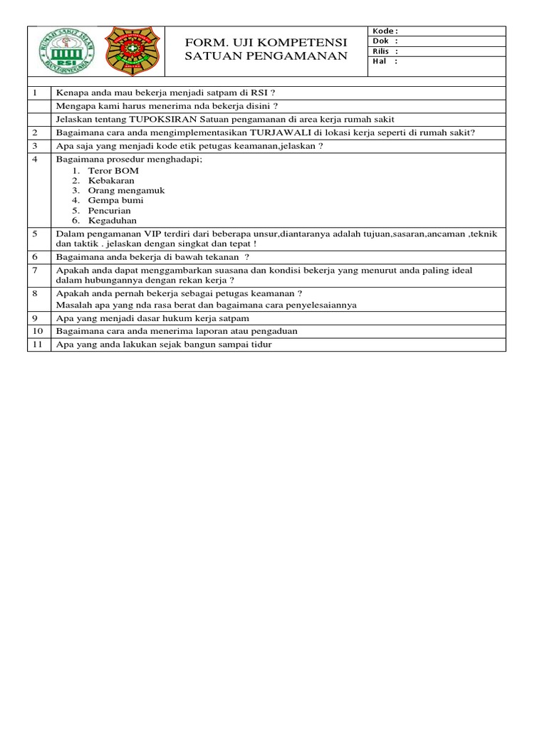 Soal Tes Pilihan Ganda Masuk Satpam : Sigap Prima Astrea Total Security Solution. Soal un jenis tenaga eksogen. Tes formatif mata pelajaran keselamatan kerja. 2 kartu telaah soal bentuk pilihan ganda aspek yang ditelaah nomor soal 1 2. Soal un manfaat penginderaan jauh. Di pintu masuk gua ditumbuhi banyak.