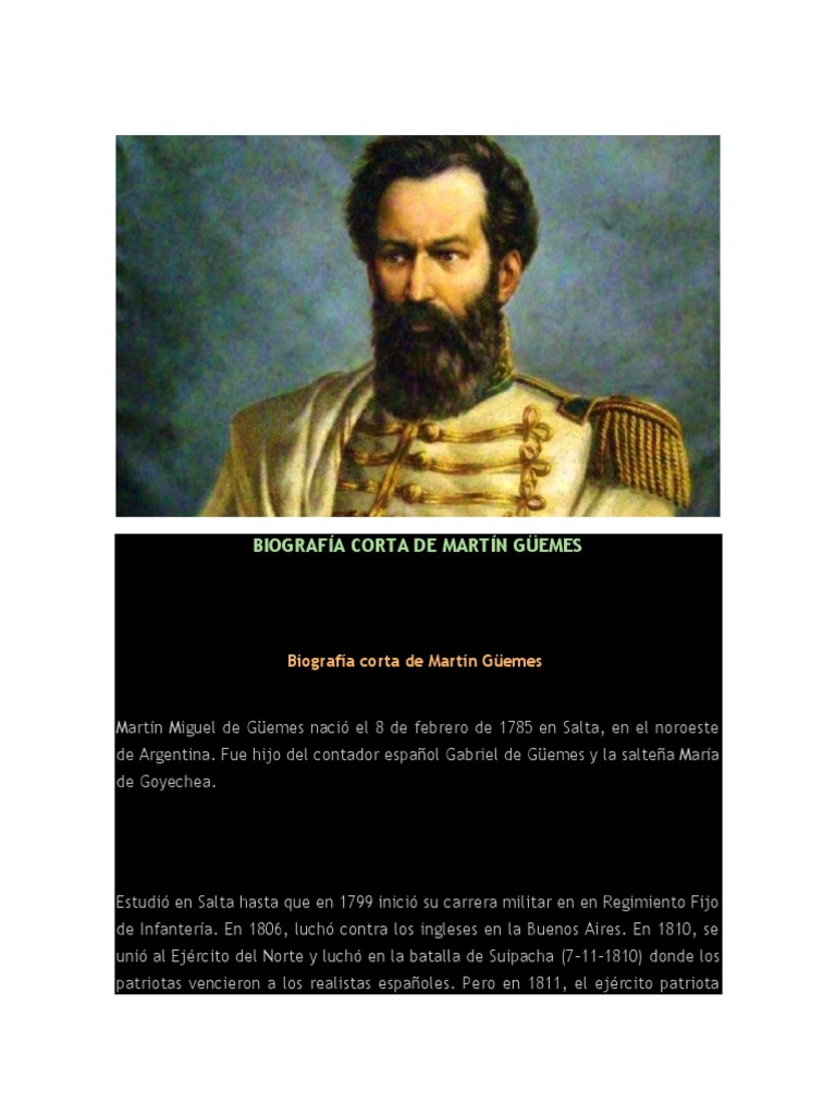 Instituto superior de formación docente martín miguel de güemes jump to. Gobernador de salta desde 1815, organizó las partidas guerrilleras que impidieron el avance del ejército español en el alto perú, permitiendo a san martín la preparación del ejército de los andes. Y cual recio huracán que se agita. Para 1812 fue enviado a buenos aires acusado de indisciplina por manuel belgrano, en ese entonces al mando del ejercito del norte. 9 de febrero de 1785:
